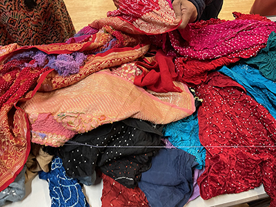 30 women worked with national award-winning artisan Akhtar Khatri from Bhuj who taught them the intricate techniques of making ‘bandhani’. Some of the work created by these women are displayed here.